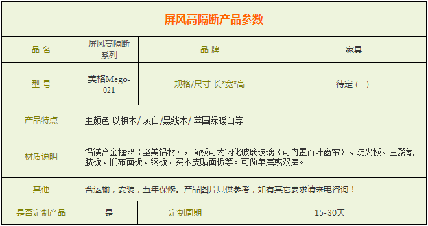 高隔斷屏風(fēng) 當(dāng)前位置:首頁 > 產(chǎn)品中心 > 屏風(fēng)系列 > 高隔斷屏風(fēng)
